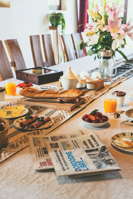 Au Domaine des Ormeaux, nous faisons notre maximum pour satisaire ce moment essentiel. Le petit-déjeuner vous sera servi dans la partie salle à manger de la Salle Conviviale. La veille nous aurons déterminé l'heure à laquelle vous le prendrez.